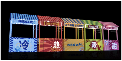 而现场的时光隧道,与地铁站里的风格迥异,迷幻气息十足的雾屏,更添复古风情,星空天幕、波普风时光长廊、年代地幕投影,定制打造科技梦幻的时光通道让人想起过去的时光,带你领略“冷热酸甜”的八十年整个活动现场。